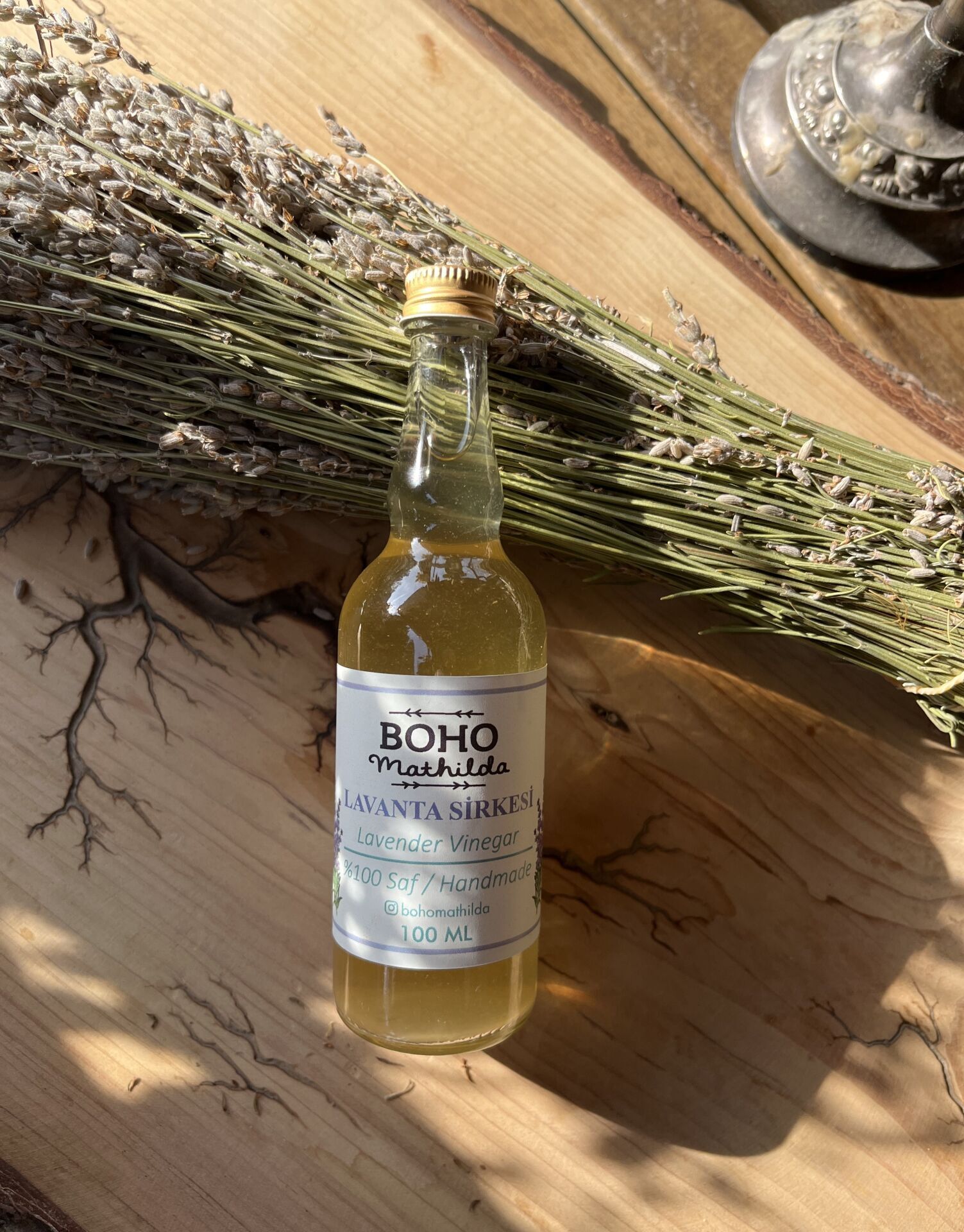 İçindekiler: Lavanta çiçekleri, Su, Kaya Şekeri ve Organik bal ile fermente edilmiştir. %100 saf Lavanta Sirkesi