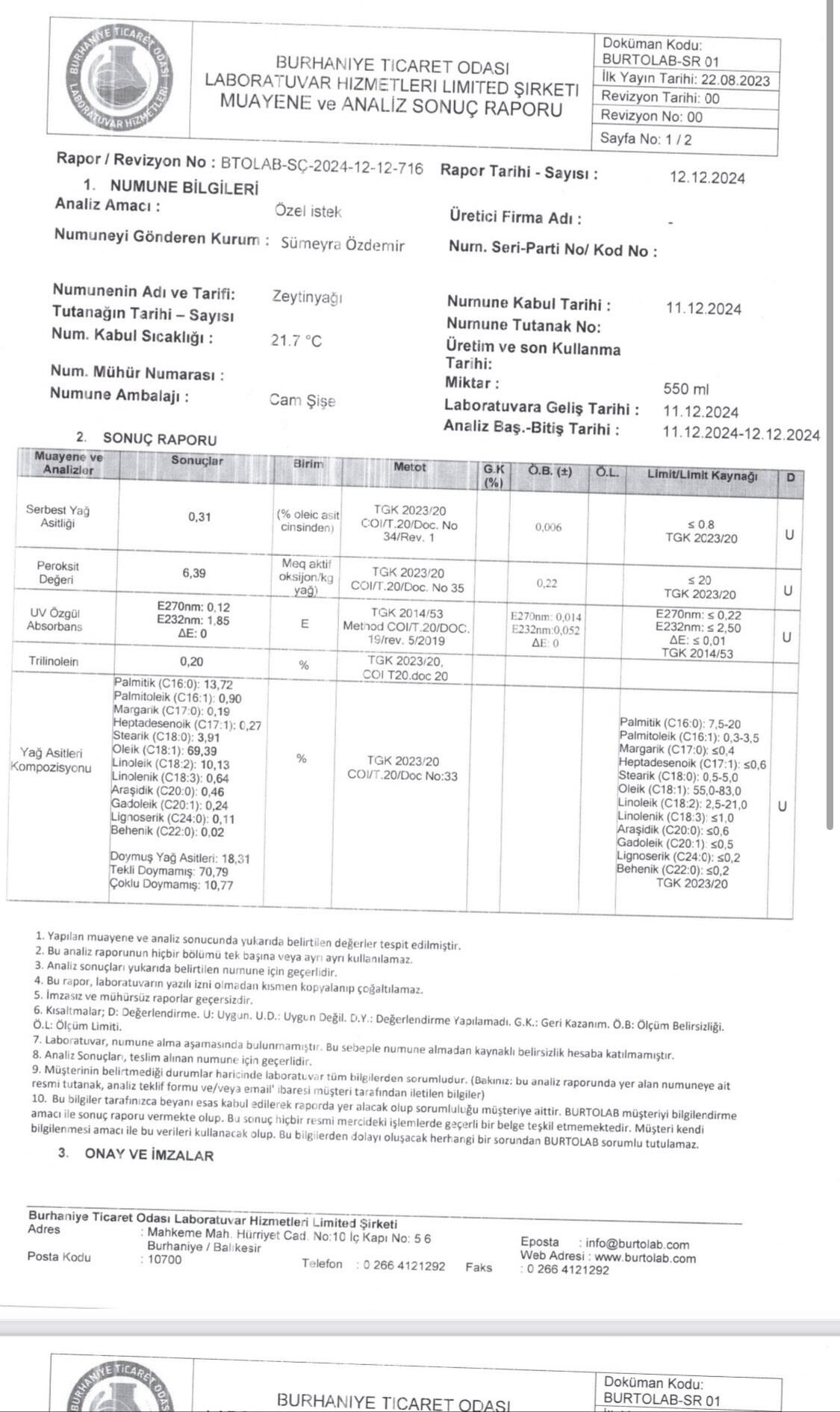 Önemli Not: 1 Aralık 2024 yılı hasadıdır. Olgun hasattır. Gemlik zeytin cinsinin yağıdır. 0.30 asitlik oranına sahiptir. Natural sızma zeytinyağımız saf halde tadım yapıldığında boğazda hafif yanma hissi verir bu da yağın antioksidan oranının yüksek olduğunu gösterir.