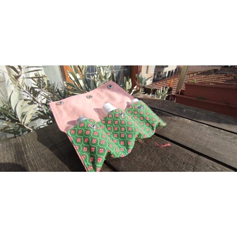 El emeği ürünlerimizden biri olan uçucu yağ taşıma çantası, çantanızda kaybolmadan uçucu yağlarınızı düzenli bir şekilde taşımanızı sağlar. Pamuklu kumaştan üretilen bu çanta, 5 ml ve 10 ml şişeleri rahatça alabilen 3 veya 4 uçucu yağ şişesi gözüyle tasarlanmıştır.Çıtçıtlı kapağı ve kapaksız olarak tasarladığımız, her biri farklı desenlerde olan yerli üretim pamuklu uçucu yağ mini çantalar yerli üretimdir. Farklı alanlarda kullanılan kumaşların değerlendirilmesi ile oluşmaktadır. Kadın üreticimiz tarafından bizim için tasarlanmıştır. Umarız sizler de değerlendirmeye yönelik bu ekolojik üretimimizden keyif alırsınız.