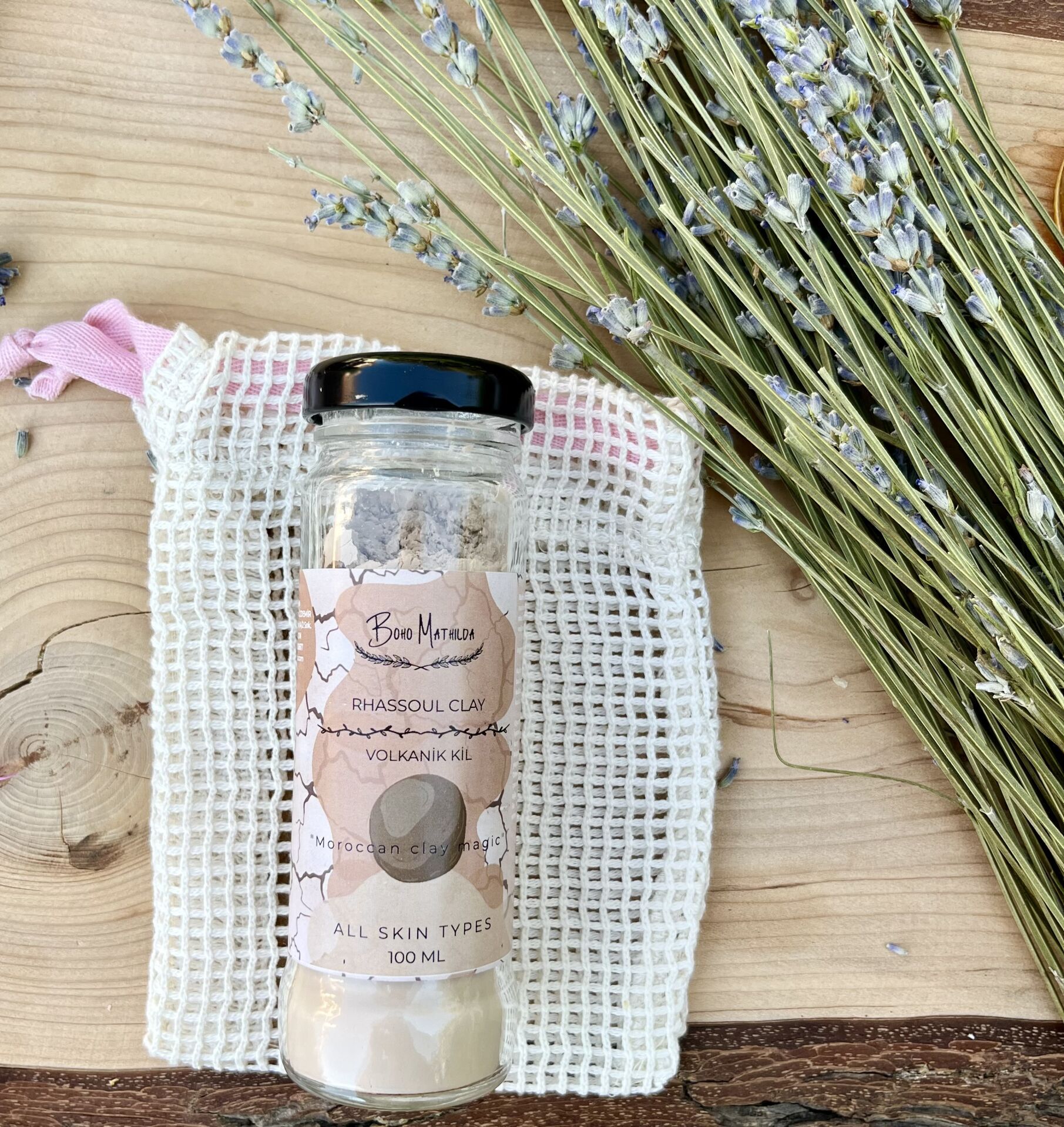 Boho Mathilda Aromaterapi’nin Ecocert sertifikalı Rhassoul Kil Maskesi, kadim güzellik ritüellerinden ilham alarak cildinizi doğal dokunuşlarla buluşturuyor. Siyah noktalarla vedalaşmak, gözenekleri sıkılaştırmak ve cildinize tazelik kazandırmak istiyorsanız, Volkanik Fas Kili'nin eşsiz mineralleriyle hazırlanan bu maske tam size göre!