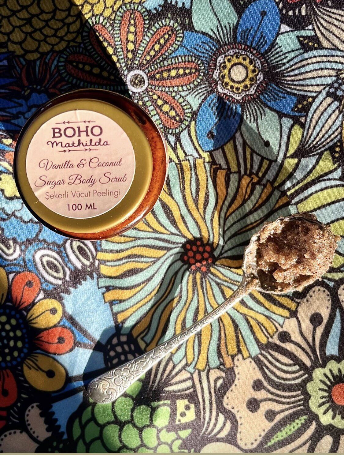 Boho Mathilda Aromaterapi’nin doğadan ilham alan bu eşsiz vücut ovması Vanilyalı Body Scrub, aromaterapi özleri ile desteklenmiştir ve cildiniz için doğal bir bakım sunar. Sağlıklı ve parlak bir cilde kavuşmanın keyfini çıkarın!