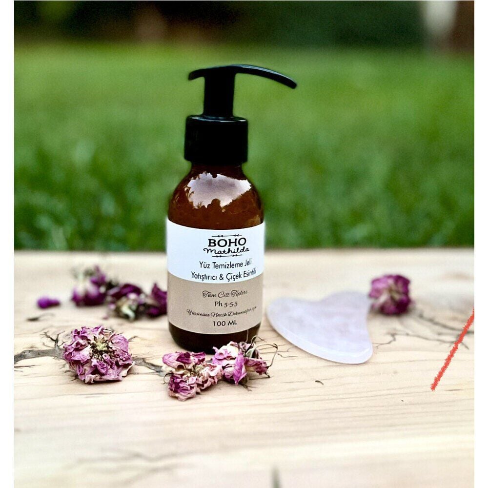Boho Mathilda Aromaterapi'nin doğal yüz temizleme jeli, cildinizin pH seviyesiyle uyumlu formülü ile gözenekleri derinlemesine temizler, sebum dengesini sağlar ve nemlendirir. Palmarosa ve Itır uçucu yağları sayesinde hassas ciltleri yatıştırır, kızarıklık ve kaşıntıyı azaltır. Yuka özü ile cilt elastikiyetini artırır ve cilt lekelerini hafifletmeye yardımcı olur. Hindistan cevizinden elde edilen doğal içeriklerle formüle edilen bu temizleyici, cildi kurutmaz ve sabun içermez. Günlük bakım rutininiz için ideal bir seçimdir.